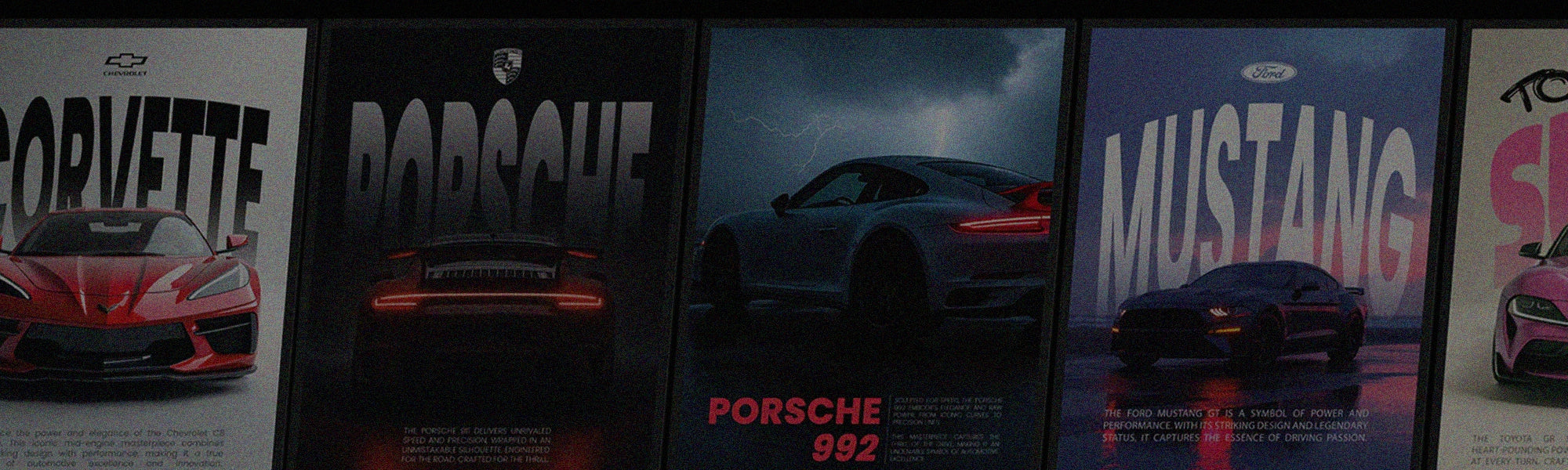 Whether you're a fan of classics or modern sports cars, our posters bring the spirit of the open road and the thrill of design right to your wall.